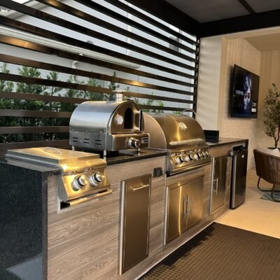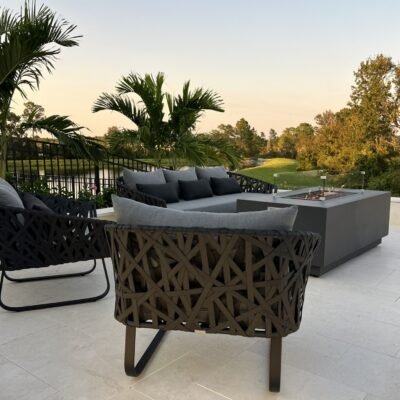 In this stunning project, a radiant pool takes center stage, surrounded by a sunken fire pit with illuminated steps, creating a cozy atmosphere for warm evenings. The summer kitchen, custom-designed for entertaining enthusiasts, transforms every meal into a celebration. With natural stone flooring, the space exudes sophistication, and the colors and materials intertwine beautifully with the breathtaking landscape. It’s the perfect setting to enjoy unforgettable moments with friends and family under the starry sky.