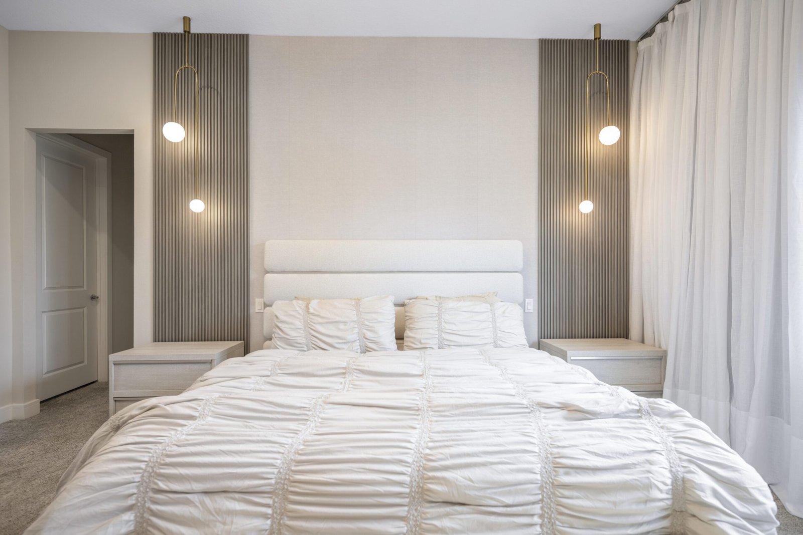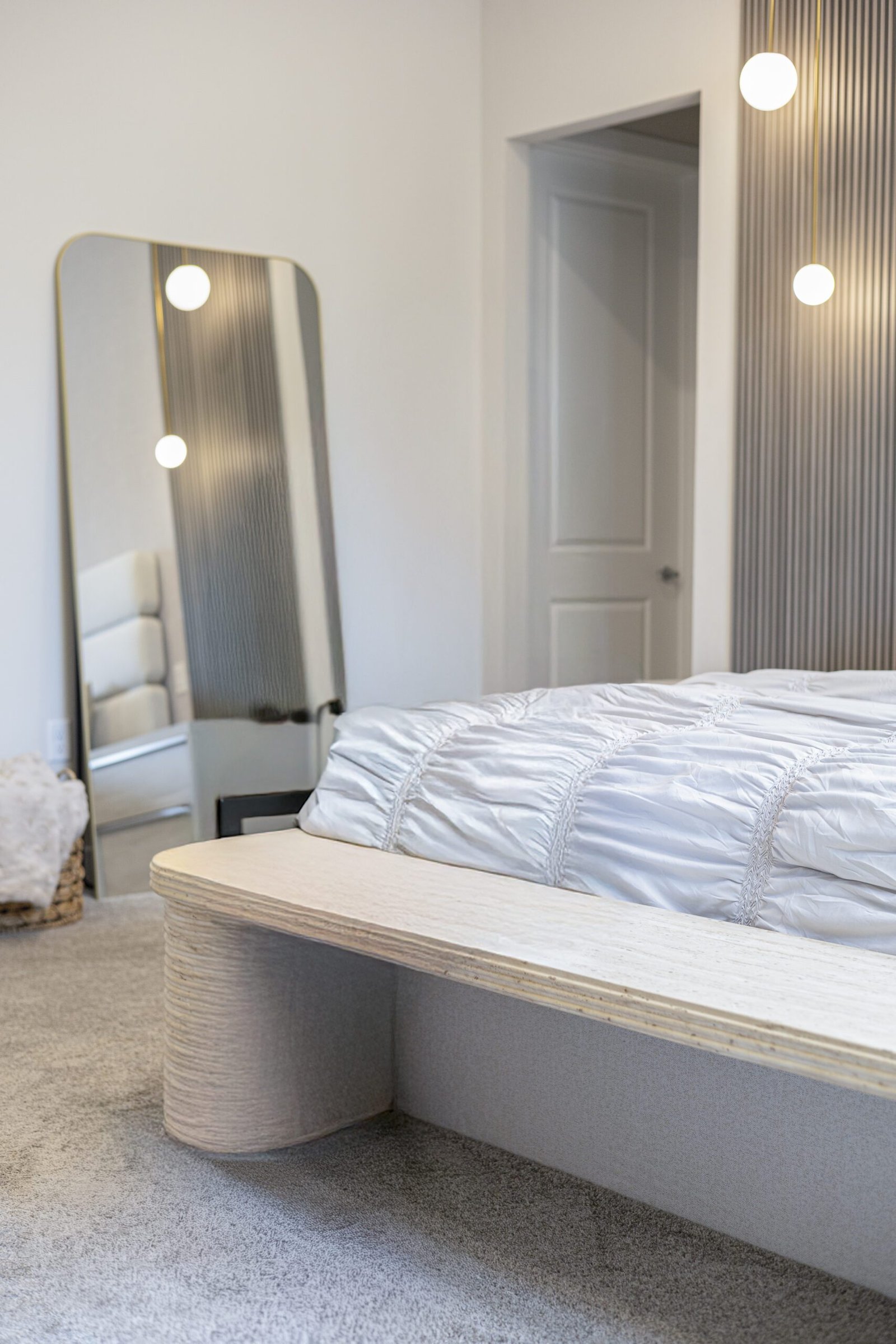 The idea for this project was to create a master bedroom that felt like a serene retreat, elegant yet effortlessly comfortable. The goal was to blend soft textures, warm lighting, and clean architectural lines into a space that invites relaxation at every glance.
