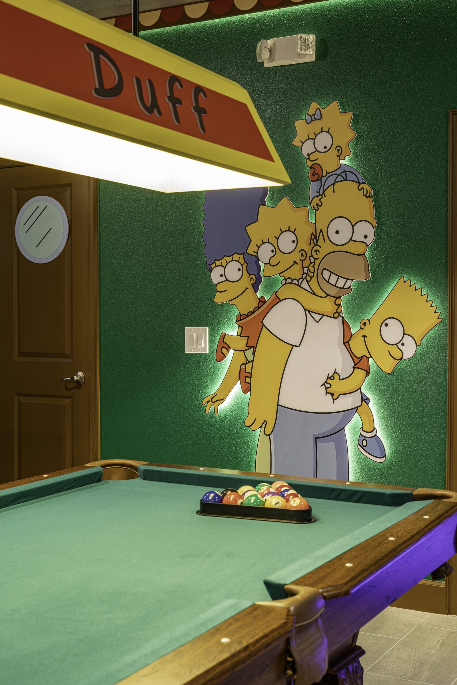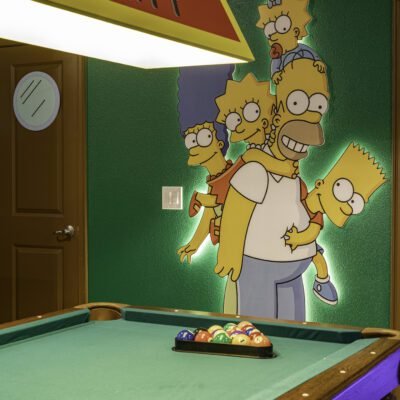 Inspired by the vibrant universe of The Simpsons Family, this loft is part of a 15-bedroom vacation home in Orlando, where design and fun go hand in hand. In this project, Divine Design created two harmoniously connected spaces within a single environment, offering guests a true immersion into the colorful and iconic world of this family with striking personalities.