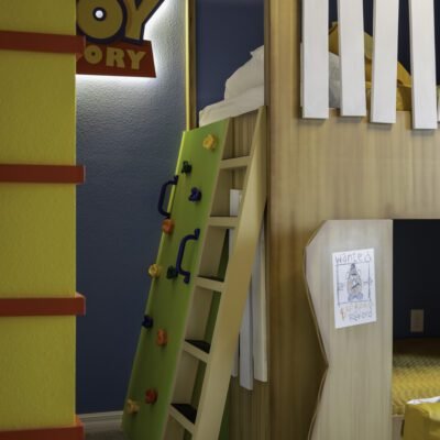 Inspired by the enchanting universe of Toy Story, this children’s bedroom invites both kids and adults to step into a world of imagination and wonder. The project creatively and playfully recreates the spirit of the movie, blending fun, comfort, and a touch of nostalgia in perfect harmony.